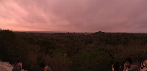 ティカル2日目です。今日は、早朝というより深夜より、4号神殿頂上よりの朝日鑑賞に向かいます。 3時30分起床、4時出発 希望者だけ参加です。ツアーの中から3人、添乗員さん、ガイドの西川さんと、真っ暗な道なので、ロッジの専門のガイドさんが付いてくだ…
