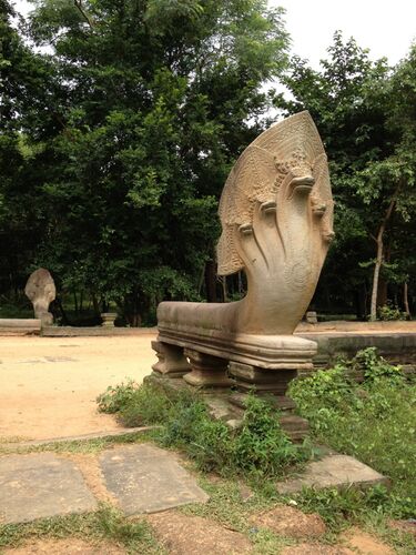 アンコール・トムは、アンコール・ワット寺院の北に位置する1辺3kmの広い城砦都市遺跡です。この遺跡は、日本政府アンコール遺跡チーム(JASA)の方に案内をしていただきました。 南大門 4方を向いた観世音菩薩の巨大な顔がある四面塔の門から入場です。 柔ら…