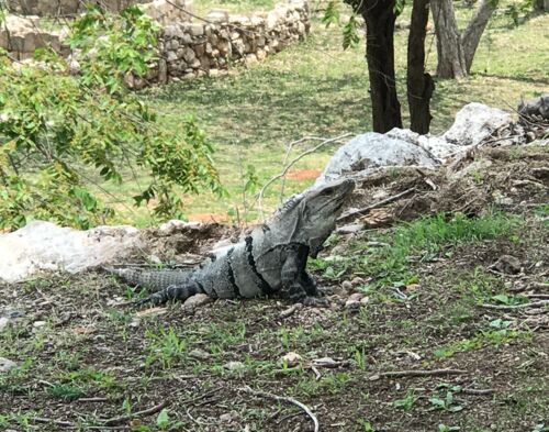 メリダの町から南へ約80kmの所にある、1996年に世界遺産に登録された「ウシュマル遺跡」観光です。 「魔法使いのピラミッド」の観光を終え、「尼僧院」「球技場」「総督の宮殿」の観光です。 このイグアナ君は、「総督の宮殿」 の側にいました。一番、大きか…